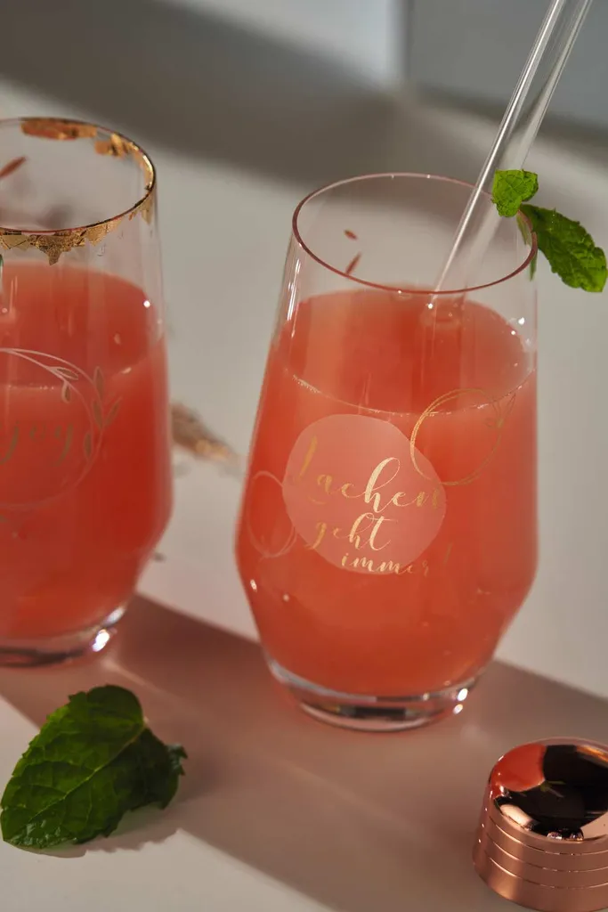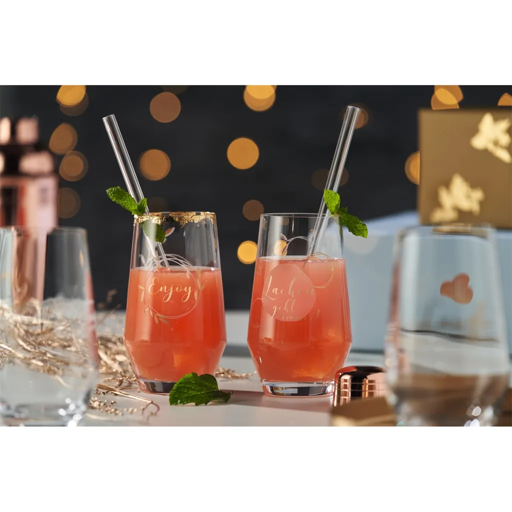 2 Trinkgläser + 2 Glastrinkhalme Presente Lachen