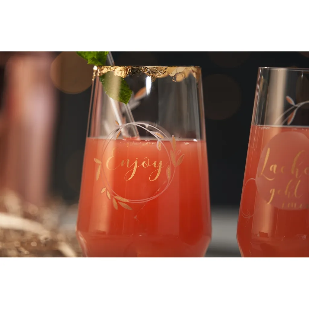 Die zwei Trinkgläser mit dem Spruch Enjoy und Lachen geht immer inklusive Glastrinkhalme sind in der originellen Geschenkverpackung eine großartige Geschenkidee. Diese zwei Trinkgläser sind optimal als Geburtstagsgeschenk für Ihre Freundin oder Freund. Geschenke, die ohne viele Worte Ihre Liebe zeigen. Das Bar-Glas ist für klassische Longdrinks und Cocktails ebenso optimal geeignet, wie für alkoholfreie Getränke. Das Teqton-Glas sorgt für dauerhafte Brillanz und Transparenz und ist somit langanhaltend kristallklar. Sie sind spülmaschinengeeignet und somit besonders praktisch im Alltag. Das Set besteht aus 2 Trinkgläsern mit 2 Glastrinkhalmen. Da sollten Sie nicht mehr lange warten! Kommen auch Sie in den Genuss dieses wunderschönen Trinkglas-Sets! Auch als Geschenk eine ausgezeichnete Wahl!
