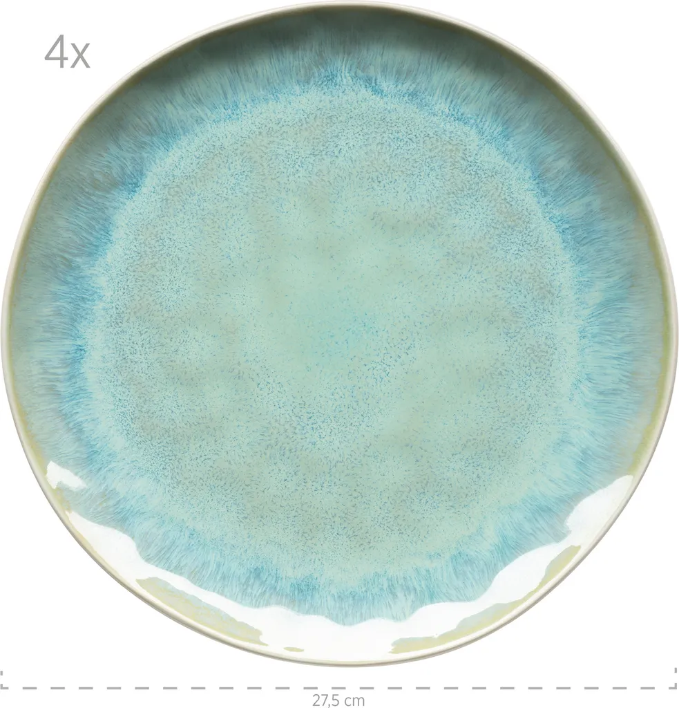 - Alle Teile sind außen in Weiß glasiert und innen wunderschön händisch in Nuancen von Grün und Türkis gesprenkelt. Die unregelmäßige Farbsprenkelung macht jedes Teil in diesem Geschirrset zu einem Unikat. Durch die randlose Formgebung mit unregelmäßiger Umrandung zaubert dieses Essservice eine skandinavische Atmosphäre auf Ihren Esstisch, die modern und rustikal zugleich anmutet_x000D_