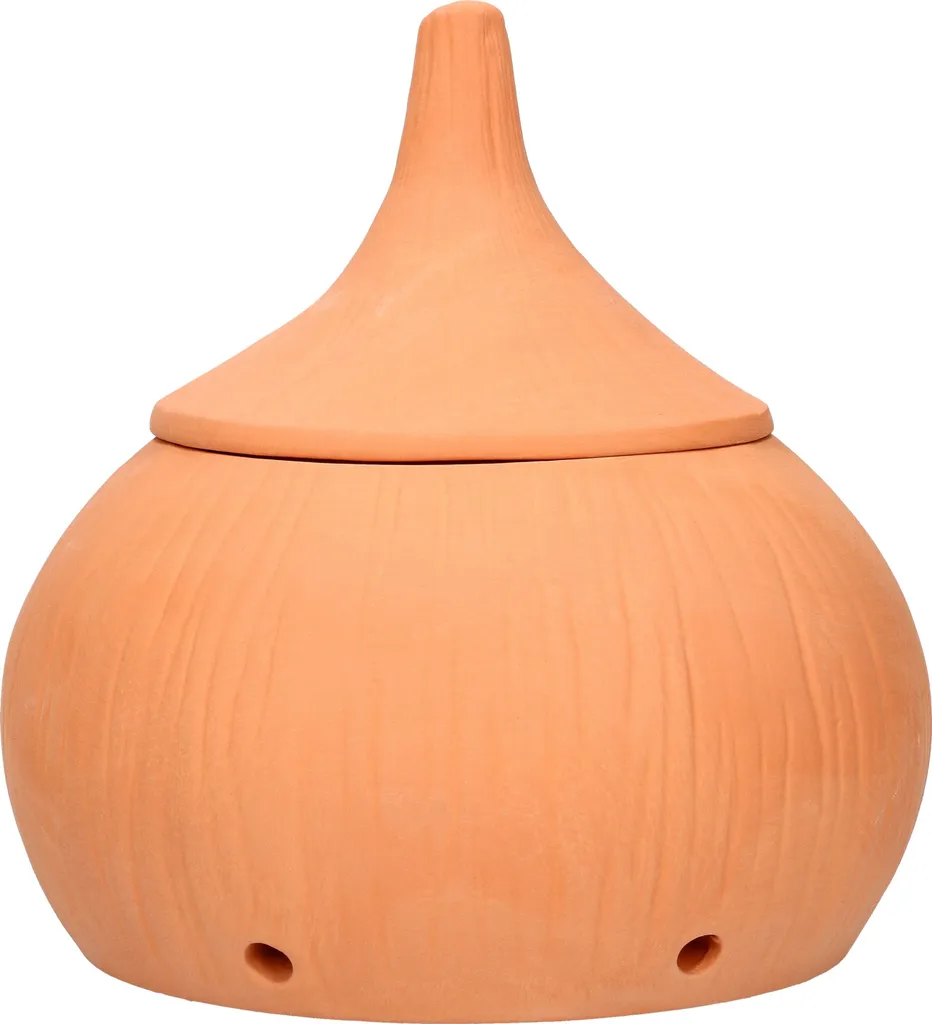 Der runde Zwiebelkopf mit Deckel, ist die mittlere Topfgröße der Terrakotta-Serie von Mambocat.