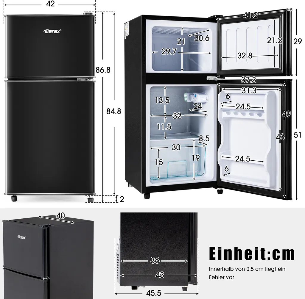 🌱【Hohe 】Dieser schwarze zweitürige Kühlschrank ist in puncto herausragend und rangiert nach den neuesten standards in der . Ausgestattet mit einem „4-Sterne“ Gefrierschrank. Der Stromverbrauch dieses zweitürigen Kühlschranks beträgt 172 kWh/Jahr und die Geräuschemission 35 dB. Die Kühltemperatur kann von -27°C bis 13°C reichen.