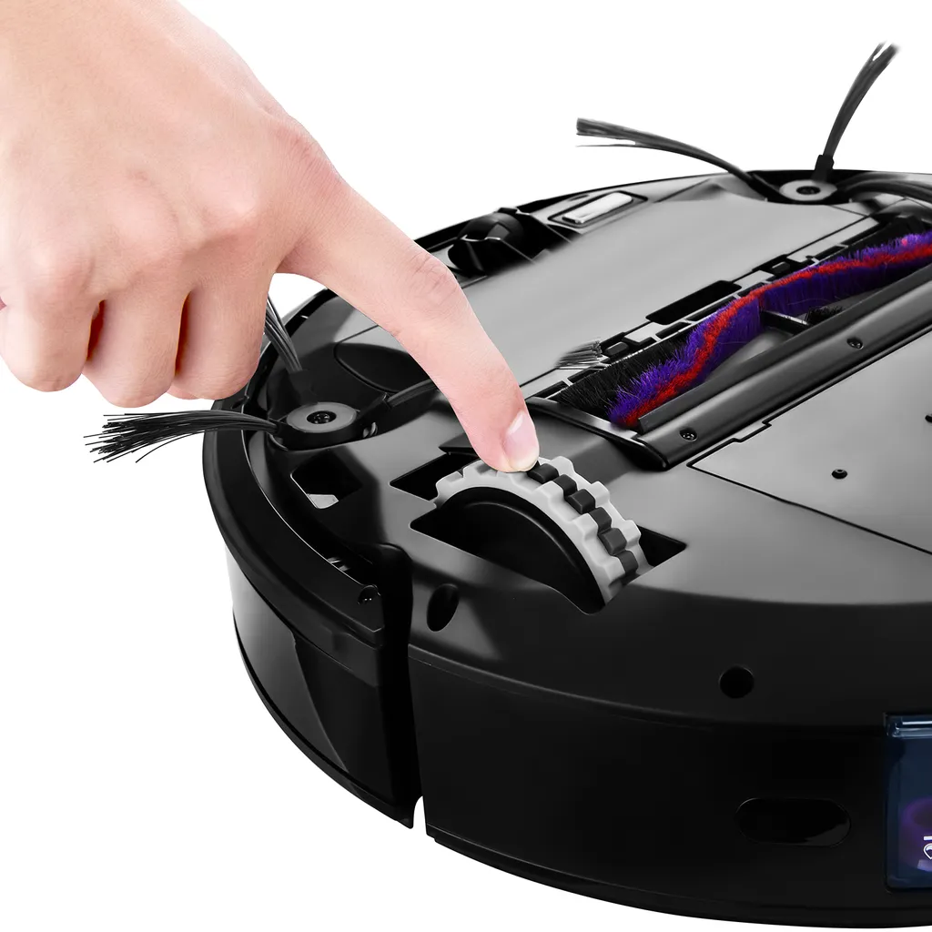 - Drei Saugleistungsstufen: Der Saugroboter mit 4000 Pa BLDC-Motor ist mit einer Walzenbürste und zwei Seitenrotationsbürsten ausgestattet, um sowohl Feinstaub als auch groben Schmutz von Hartböden und Teppichen zu entfernen. Im Eco-Modus (600 Pa) werden Staub und kleine Partikel effizient entfernt. Der Standardmodus (1200 Pa) entfernt mühelos selbst groben Schmutz und Haare. Im Turbo-Modus (4000 Pa) werden auch große Partikel zuverlässig angesaugt.