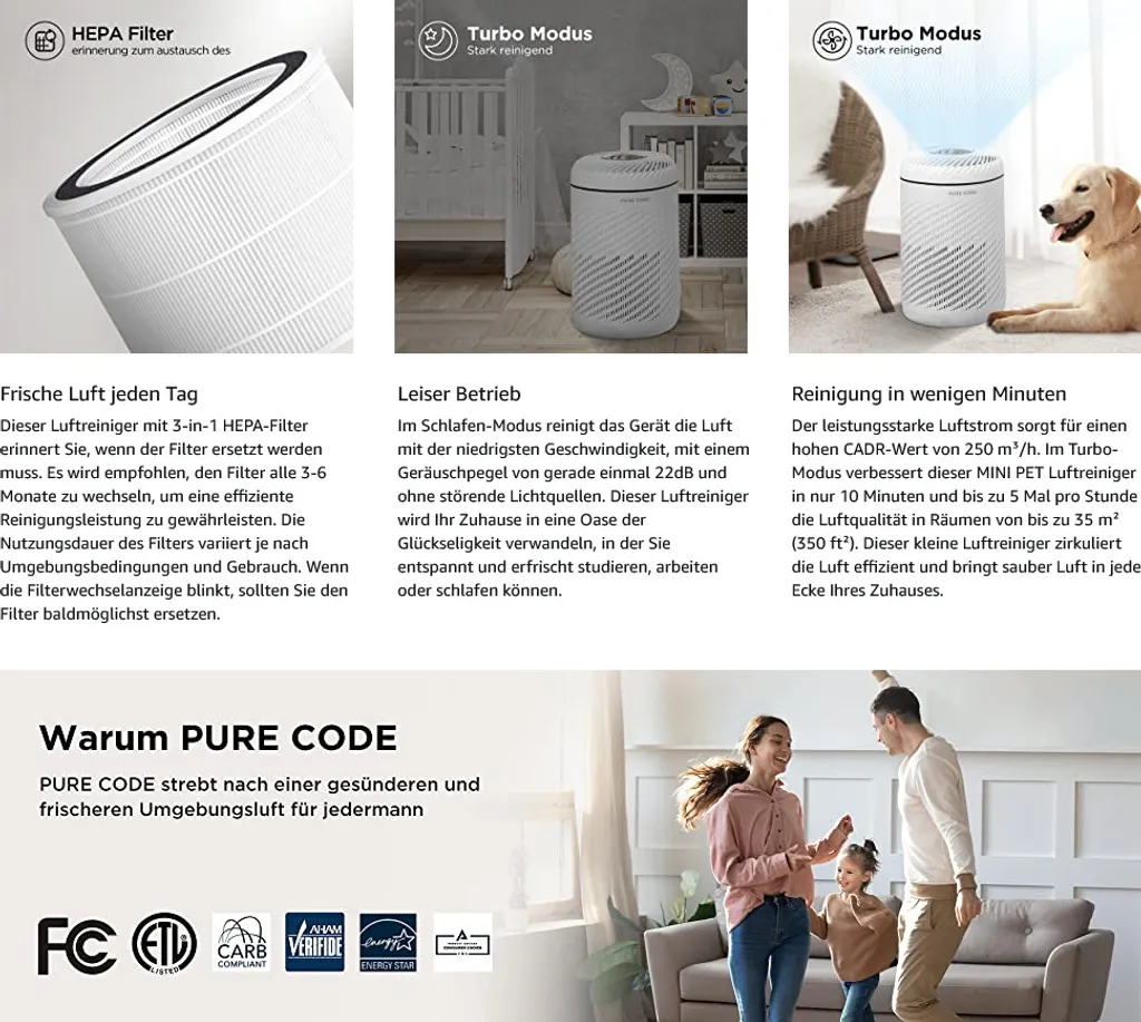 Artikelnummer: A2F1Z 439463453 Kategorien: Haushaltsgeräte, Klima- und Heizgeräte, Luftregulierung, Luftreiniger Schlagwort: PURE CODE