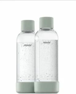 Die wiederverwendbaren BPA freien 1 Liter PET-Wasserflaschen sind mit allen Mysoda Wassersprudler Modellen kompatibel und verfügen über einen Schnellverschluss-Mechanismus, für eine einfache Handhabung. Der Deckel und Boden der Flaschen bestehen aus erneuerbaren Biokomposit auf Holzbasis. Im Paket sind 2 Stück enthalten. Maße: Höhe 26,5 cm, Ø 8,4 cm