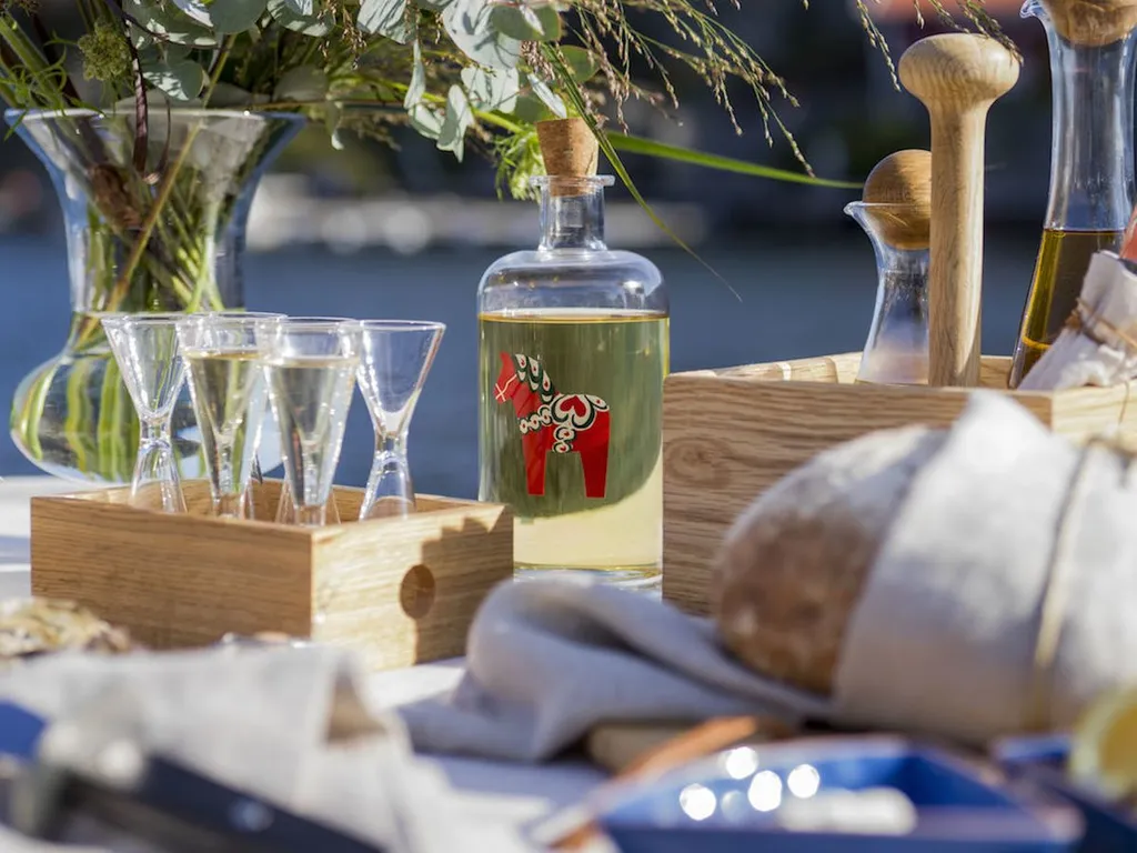 Mundgeblasene Schnapsgläser in einer Aufbewahrungsbox. Die Gläser sind wendbar, so dass Sie die