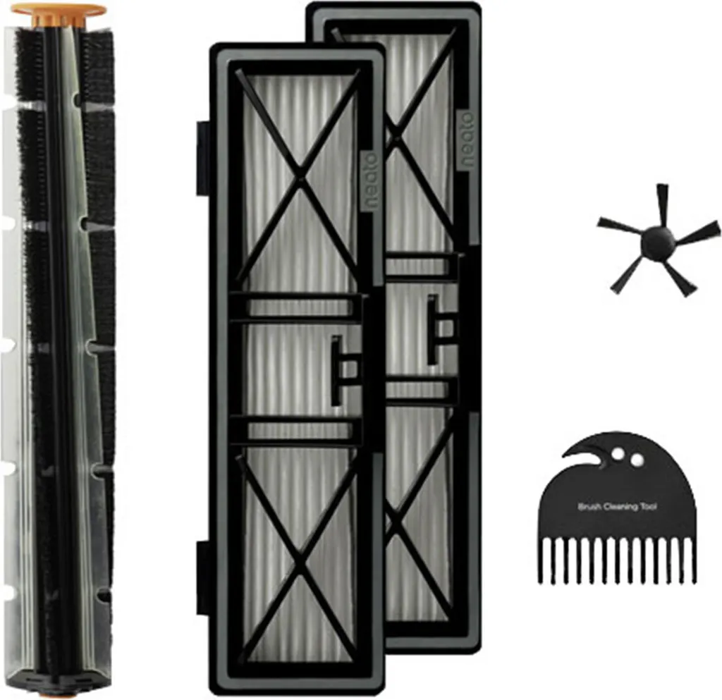 Erfrischen Sie Ihren Neato Roboter mit einer neuen Spiral Combo Bürste, 1 Seitenbürste, 2 Ultra-Performance-Filtern und einem Reinigungswerkzeug. Enthalten sind 2 HEPA-Filter, die ideal für Häuser mit Haustieren sind, da sie bis zu 99,5% der Allergene, Staub und anderer Partikel erfassen.