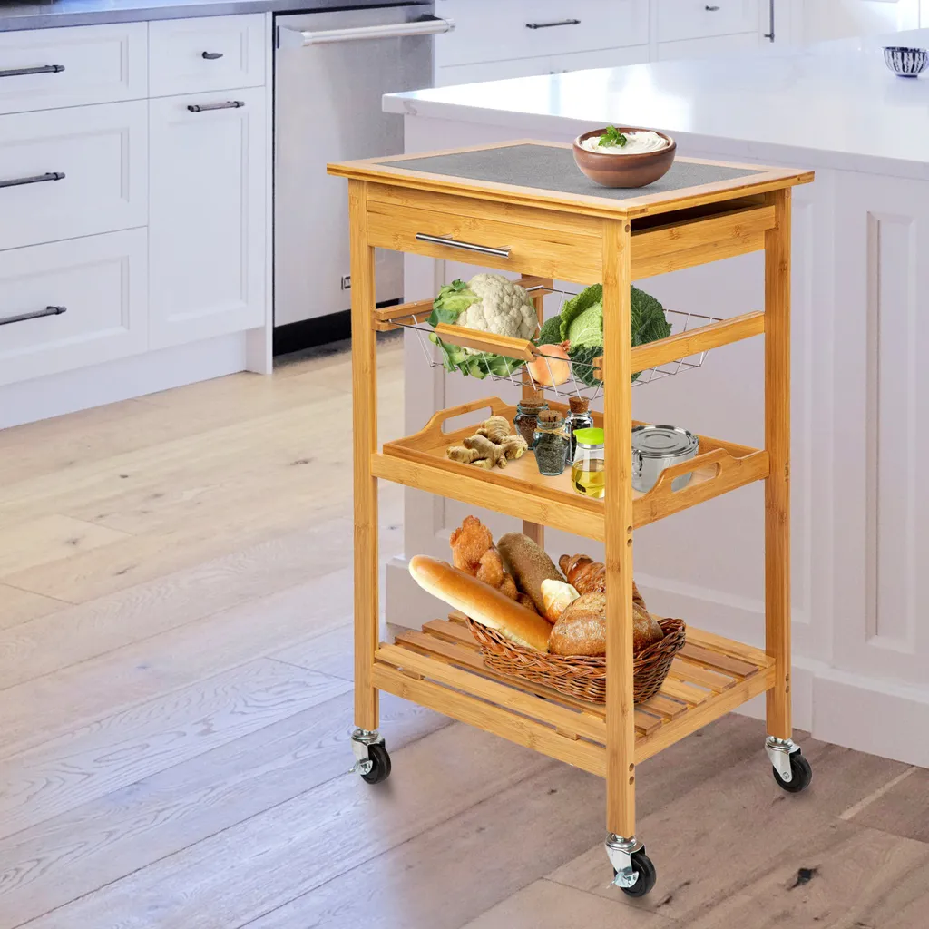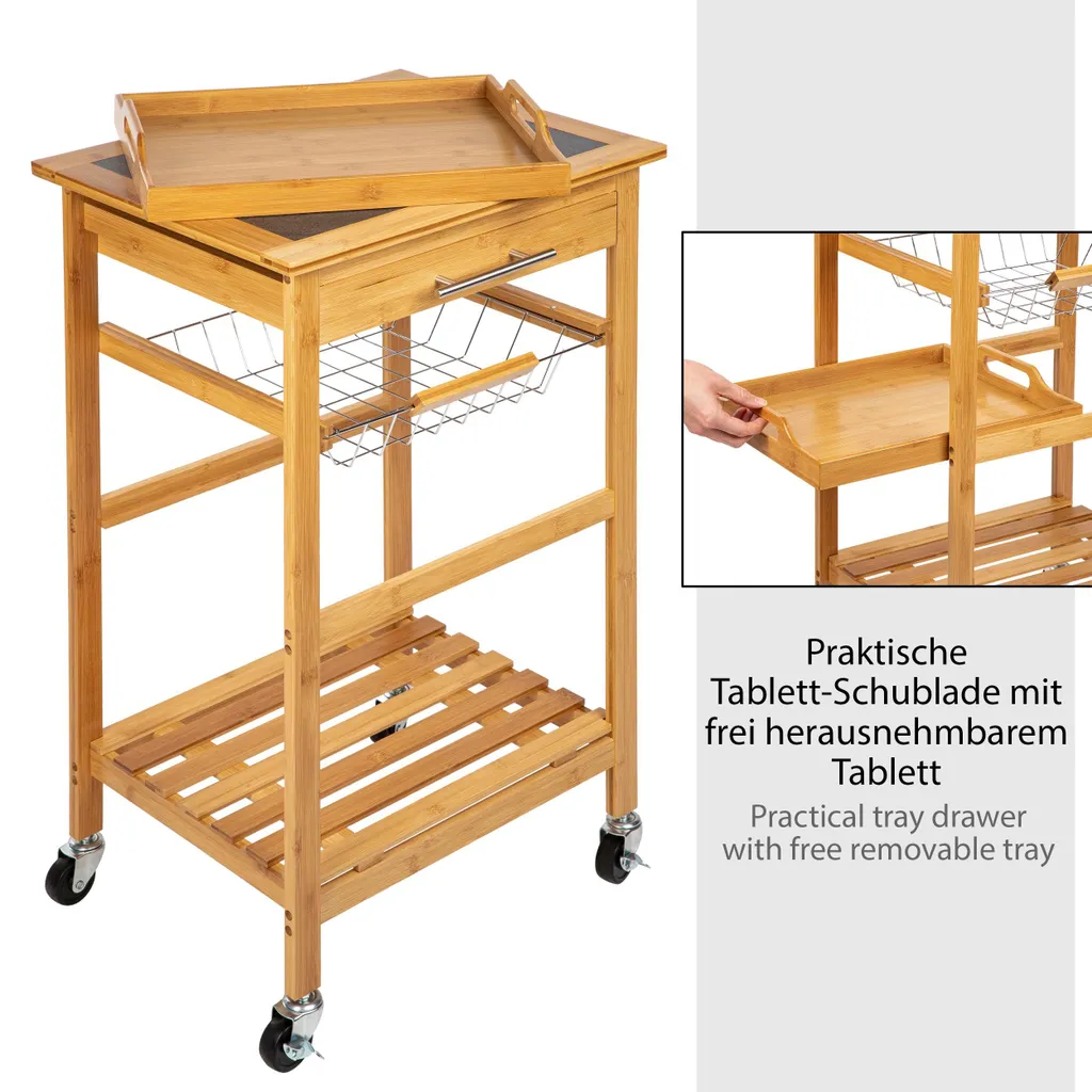 – Küchen- und Servierwagen aus Bambus bietet viel Stauraum. Das abnehmbare Tablett erleichtert ein schnelles Transportieren