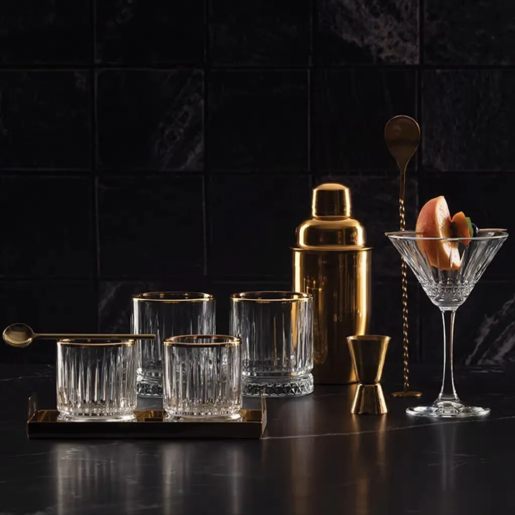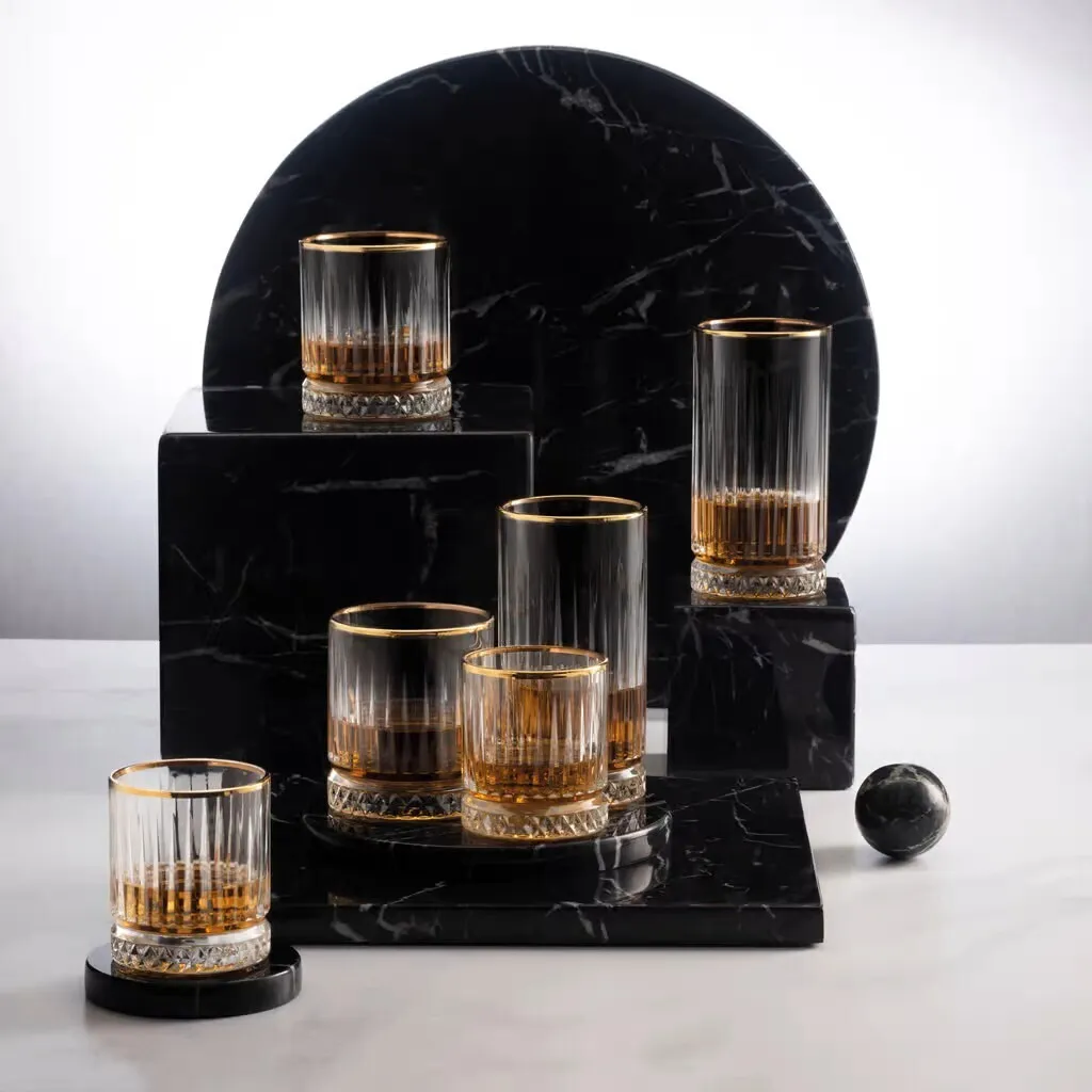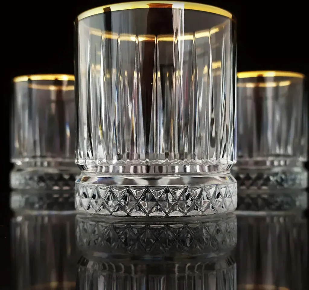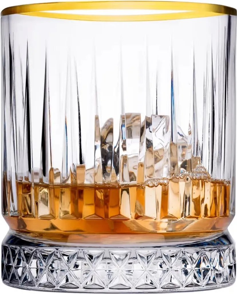 - Pasabahce Elysia Wassergläser, Whiskeyglas 4-er Set in edler Kristall Optik, Golden Touch Trinkgläser, Whiskeyglas 4er Set, Longdrinkgläsern mit Goldrand, Eleganter goldfarbener Rand, Cocktailgläser 210 ml