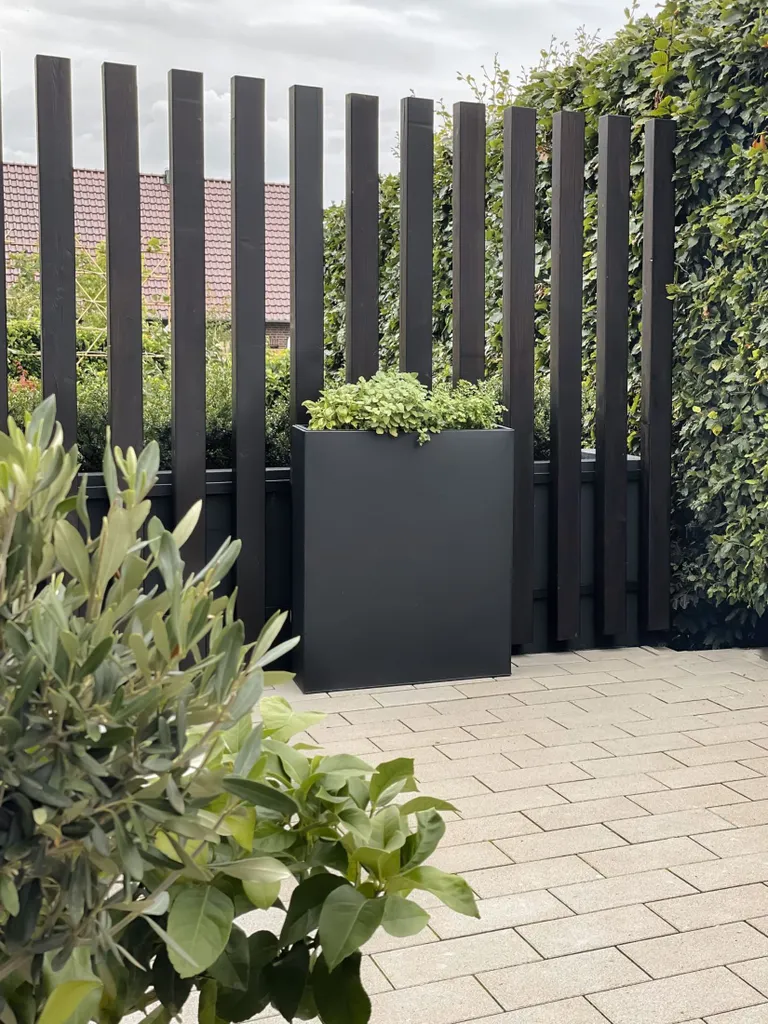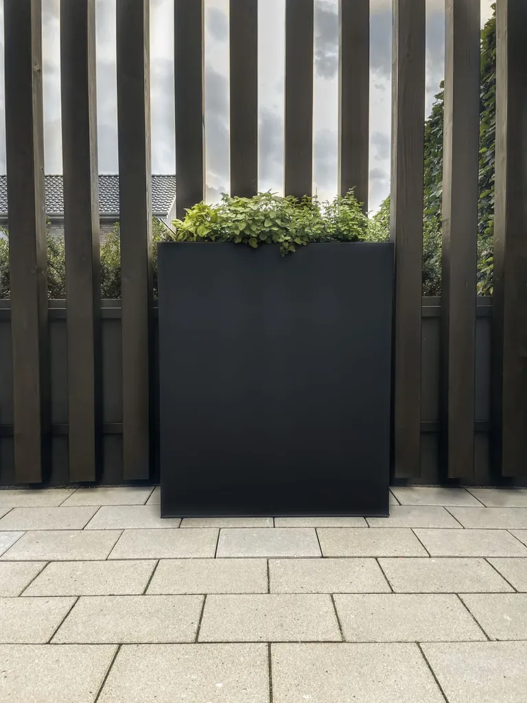 Pflanzkübel Raumteiler Pulverbeschichtetes Stahlblech „Elemento“, Schwarz – 75x25x90 Cm