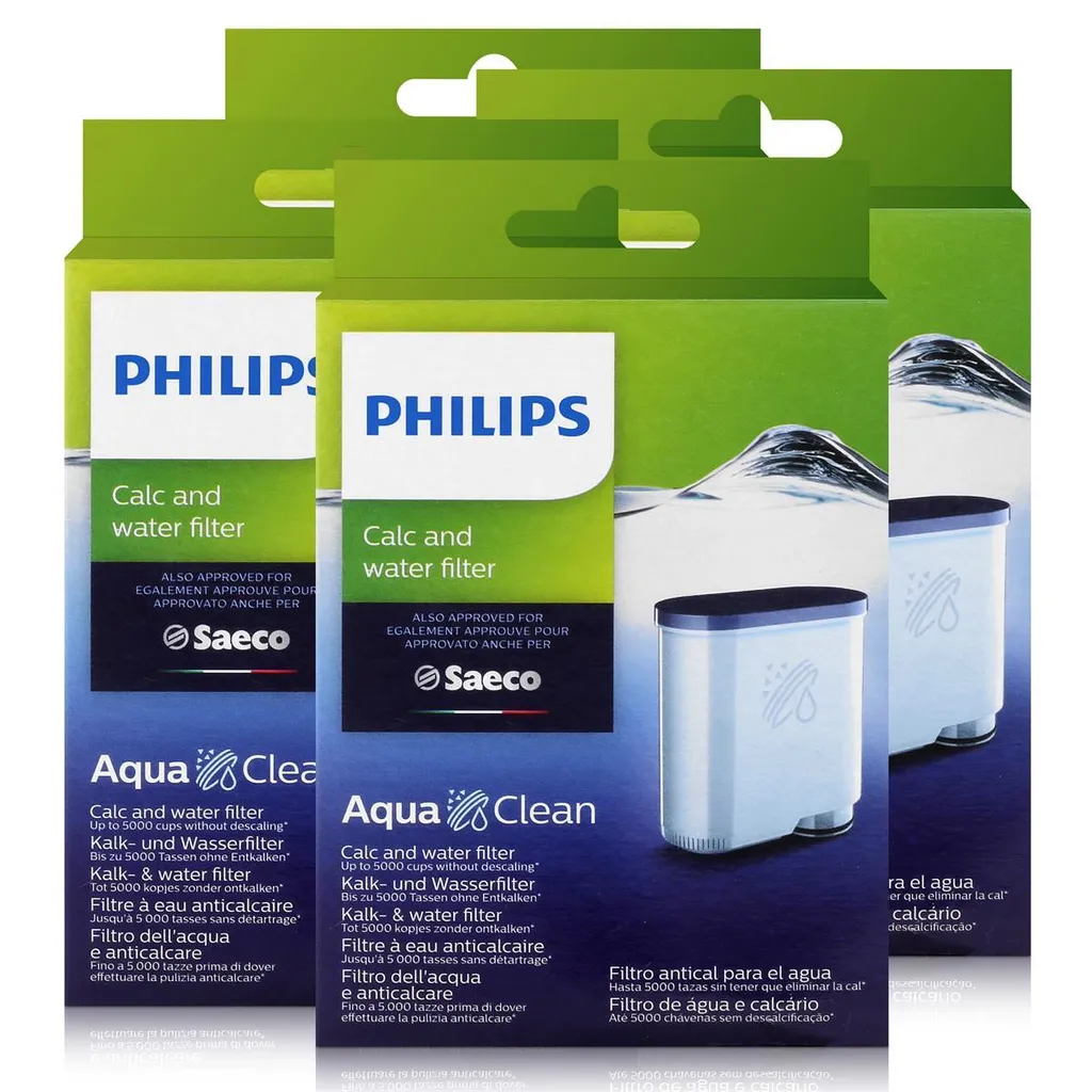 Insbesondere lohnt sich die Anschaffung der Filter im Mehrpack- . Entdecken Sie bei uns neben dem Philips AquaClean Wasserfilter auch andere nützliche Produkte, welche Sie für Saeco und Philips Kaffeevollautomaten einsetzen können. Beispielsweise empfehlen wir Ihnen das Saeco Service Kit als sinnvolles Pflegeprodukt. Denn die beweglichen Teile des Automaten benötigen eine konstante Pflege und durch diese Prophylaxe sinkt das Risiko für teure Reparaturen. Ebenso müssen die Dichtungen funktionstüchtig sein, um Schädigungen durch Austreten des Inhalts im Innern der teuren Apparatur zu vermeiden.