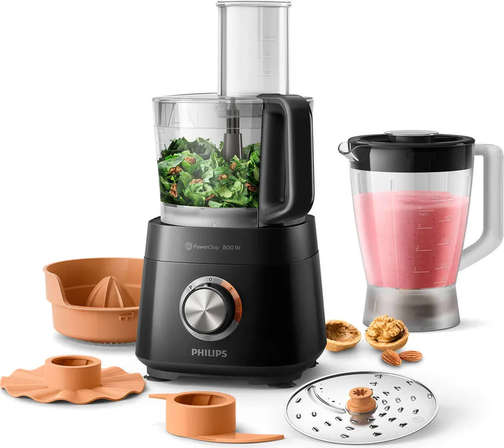 Die PowerChop-Technologie ist eine Kombination aus Klingenform, Schneidewinkel und Innenbehälter, die eine optimale Leistung beim Zerkleinern von weichen und harten Lebensmitteln ermöglicht. Sie ist auch perfekt zum Zubereiten von Pürees und Mixen von Kuchenteig!