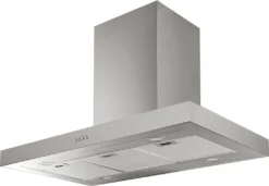 Inselhaube edelstahl mit 3 Fettfiltern; 650 m’/h; 4 X 1,5 Watt LED-Beleuchtung, 90 cm breit; EnergieeffizienzkJasse C