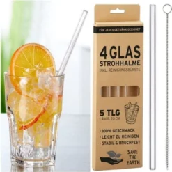Glasbecher Mit Deckel & Glashalm, 4er Set 440 Ml, Spülmaschinenfest, Trinkglas, Transparent