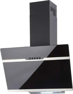 PKM Dunstabzugshaube 60 Cm, Wandhaube, Kopffrei, Glasfront, Umluft / Abluft, Schwarz