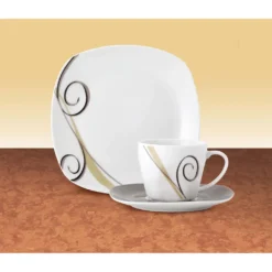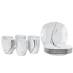 Van Well Frühstücksservice Silver Night, 12tlg 6 Personen, 6 Kaffeebecher + 6 Teller, Linien-Dekor