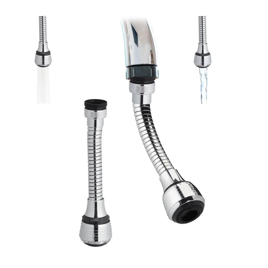 Spülen war nie einfacher! Mit dieser Wasserhahn Verlängerung haben Sie die Wahl zwischen 2 Strahlarten – der weiche Strahl für den täglichen Gebrauch und die harte Brause zum Abspülen von Geschirr. Der 15 cm lange Schlauch ist in alle Richtungen beweglich und erreicht somit alle Ecken Ihres Spülbeckens. Gleichzeitig verfügt die Küchenbrause über einen Spareinsatz, wodurch Sie Wasser und Geld sparen können. Dank 4 austauschbarer Gewinde ist der Strahlregler für verschiedene Armaturen geeignet.
