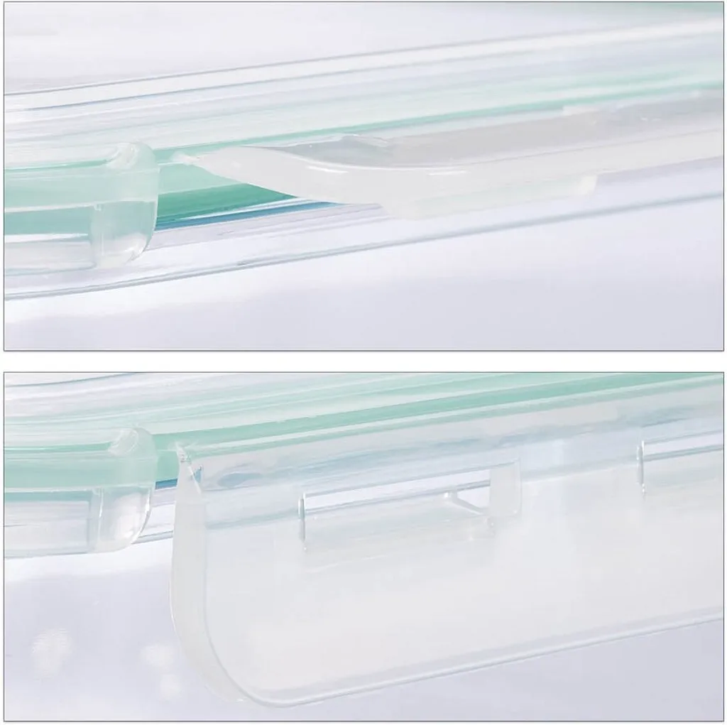 Das große Glasbehälter 12er Set ist die ideale Ausstattung zum Lagern, Zubereiten oder Mitnehmen von Lebensmitteln. Durch den stabilen Deckel mit Klippverschluss schließen die Glas Vorratsbehälter luftdicht und Ihre Lebensmittel werden hygienisch und sicher aufbewahrt. Auch für unterwegs sind die auslaufsicheren Boxen perfekt – so können Sie Ihr Mittagessen mitnehmen und es auch gleich in der Dose in der Mikrowelle oder dem Ofen erwärmen. Für jede Lebensmittel Menge haben Sie die richtige Box.