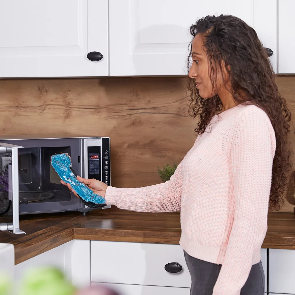 – Zur Warmanwendung: Vor Verwendung 3 Minuten im Wasserbad (max. 80 °C) oder in der Mikrowelle (800 W, 45 Sek.) erwärmen