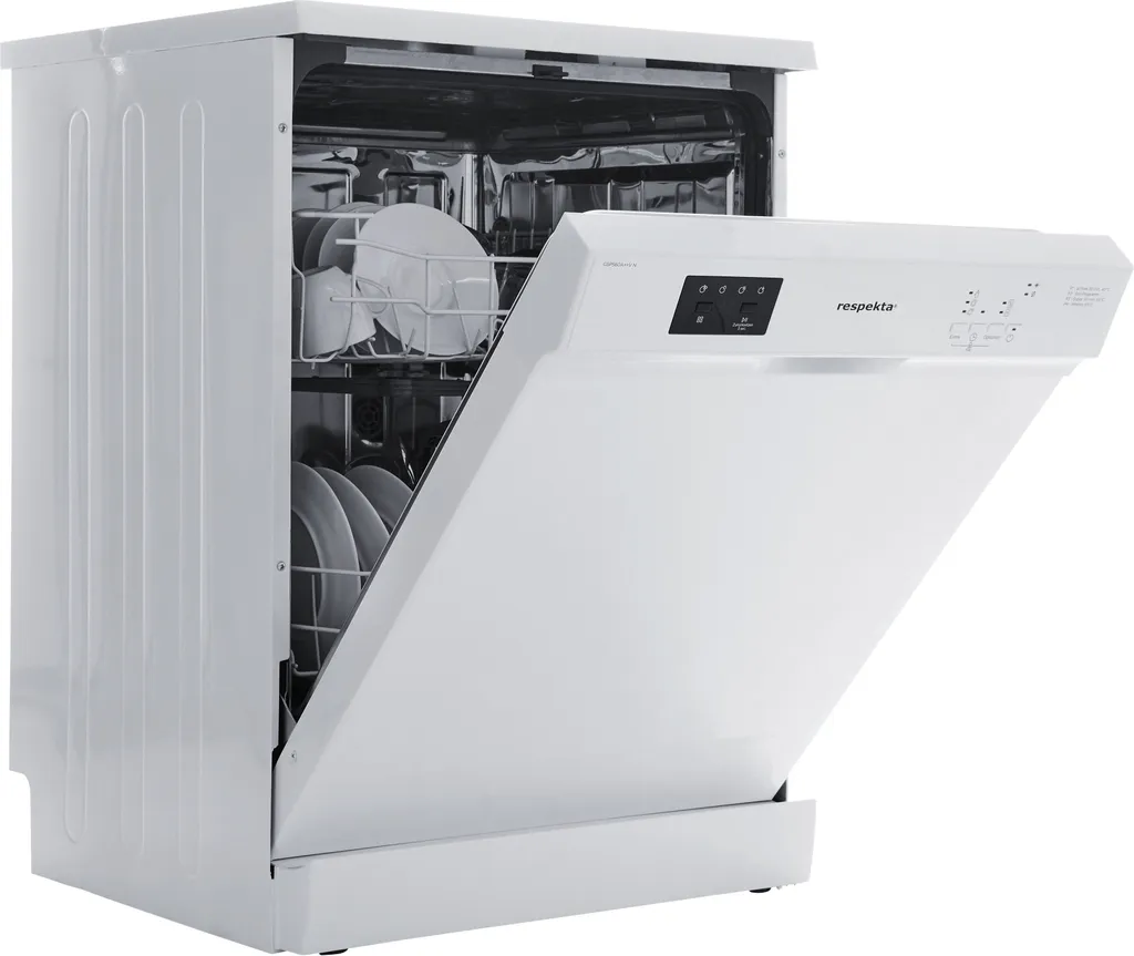- respekta GSPS 60 V – Mit seinen 12 Maßgedecken ist der neue Standgeschirrspüler von respekta ausgezeichnet geeignet für jeden Haushalt. Mit der schont das Gerät nicht nur die Umwelt, sondern auch Ihren Geldbeutel. Durch das Intensivprogramm reinigt der Geschirrspüler auch stark verschmutzte Gläser, Töpfe und Teller hygienisch sauber.