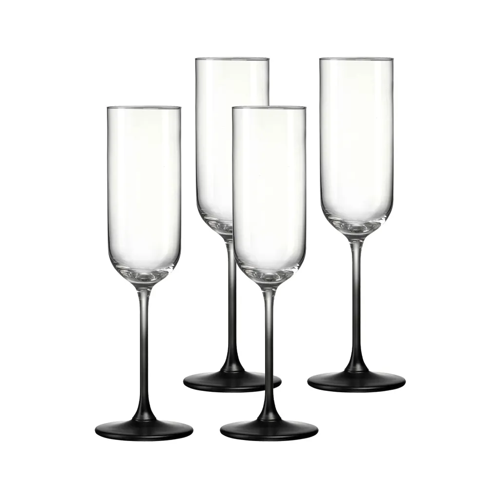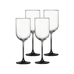 Minimalistisches Kelchglas mit Bodenplatte und Stiel in Mattschwarz, das nicht nur in Kombination mit der jasper-Keramik, sondern auch mit (fast) jedem anderem Geschirr ein toller Eyecatcher auf dem gedeckten Tisch ist! Das Set besteht aus: 4x Rotweinglas, 4x Weißweinglas, 4x Sektglas
