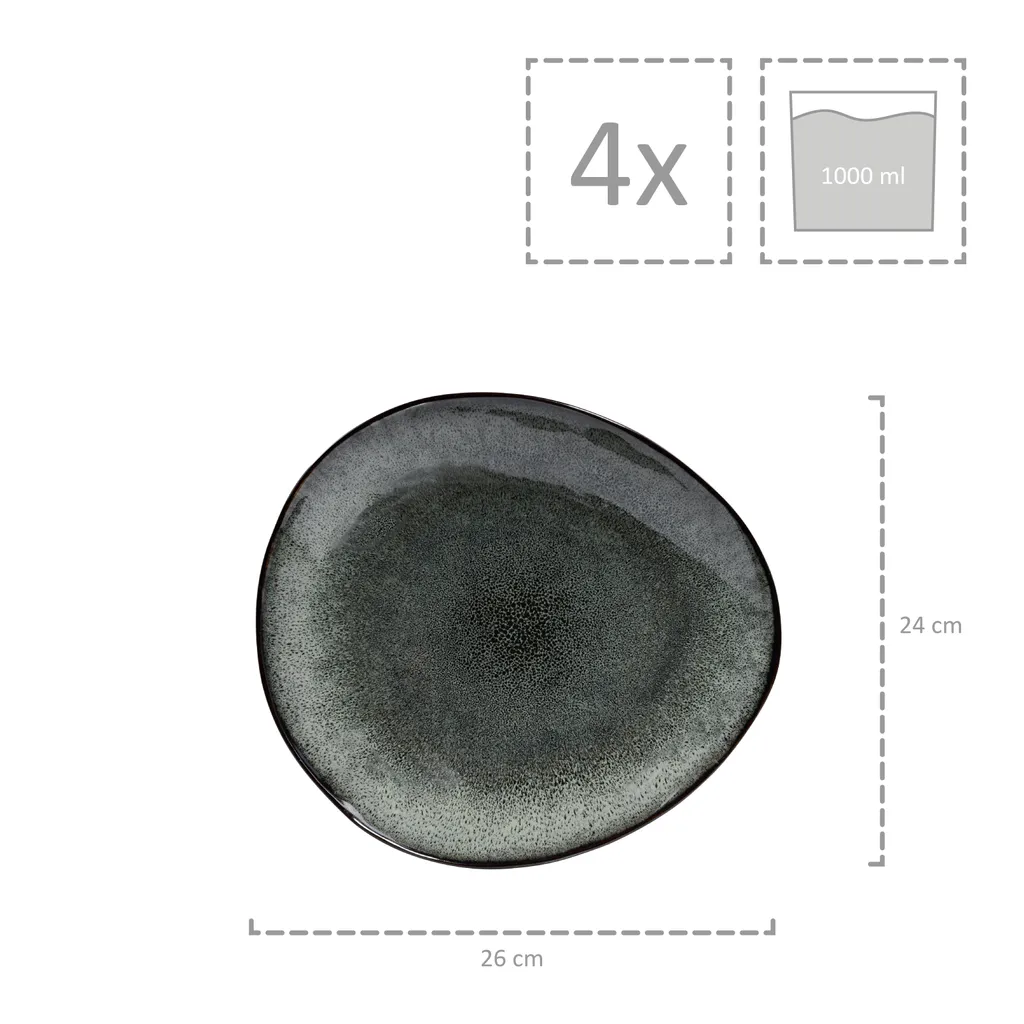 4x Pastaschalen – BxLxH: 26 x 24 x 5,5 cm- Fassungsvermögen: 1000 ml