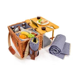 Der Weidenpicknickkorb ist nicht nur praktisch, auch die Qualität überzeugt. Der Picknickkoffer besteht aus Weide und Leder. Die Teller bestehen aus Porzellan, die Gläser aus hochwertigem Kunststoff und das Besteck aus rostfreiem Stahl und hochwertigen Kunststoffgriffen