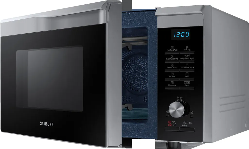 Die Slim-Fry-Funktion von Samsung frittiert Lebensmittel mit einer Kombination aus Mikrowellen-, Grill- und Heißluftfunktion. Dieses ausgeklügelte Verfahren sorgt gemeinsam mit der Crusty Plate fast ohne Öl für optimale Frittierergebnisse. Den Unterschied sieht und schmeckt man!