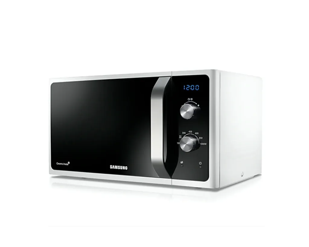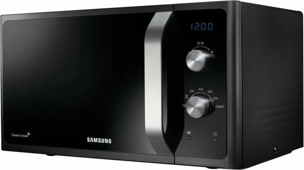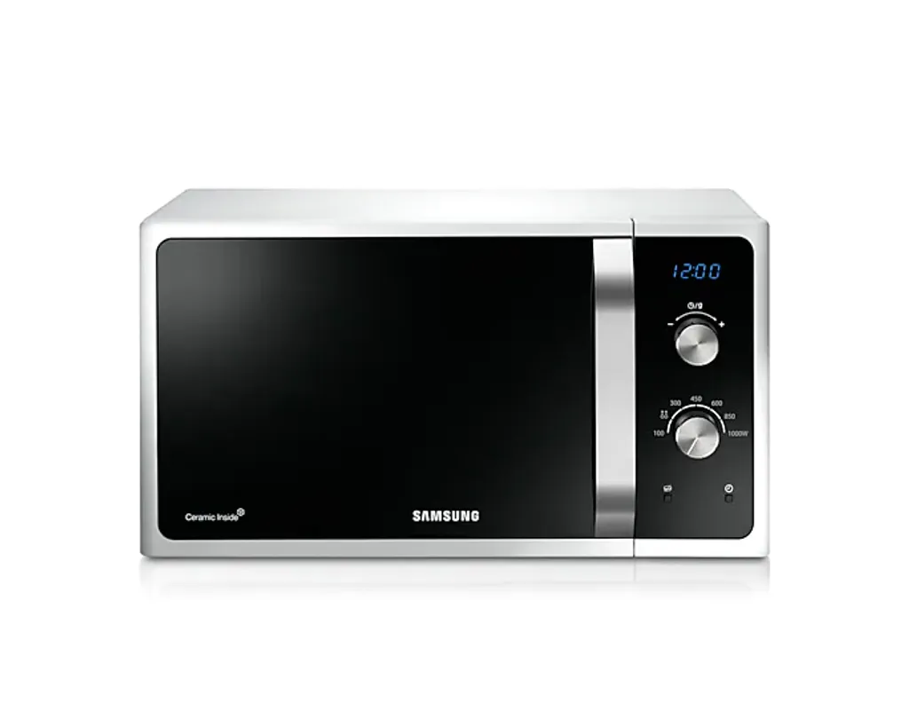 SAMSUNG – Solo Mikrowelle 28l Elektromechanische Steuerung Keramik-Emaille-Hohlraum Plattenspieler-Stoppfunktion Dampfkocher Schwarzes Finish, silberner Griff