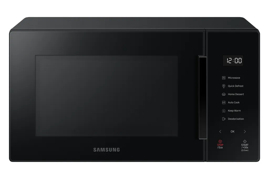 Die Samsung MS23T5018AK / EN Solo-Mikrowelle verfügt über ein Display mit vollständigem Touchscreen. Mit 25 automatischen Programmen können Sie viel zubereiten, wie Desserts, Gemüse und Müsli. Dank Power DeFrost besonders schnell auftauen. Die Desodorierung stellt sicher, dass keine unangenehmen Gerüche in der Mikrowelle verbleiben. Fertig vorbereitet? Dann ist das Innere dank der keramischen Innenwände leicht zu reinigen. Die perfekte und bequeme Innenwand Die extrem starke Keramikglasur an der Innenwand macht die Mikrowelle besonders langlebig. Es ist 7x kratz- und rostbeständiger als herkömmliche Edelstahlwände. Dies hält Ihren Mikrowellenherd bis zu 99,9% bakterienfrei *. Darüber hinaus verfärbt sich das Keramikinnere nicht, was auch immer Sie in Ihrer Mikrowelle vorbereiten. Haben Sie versehentlich etwas verschüttet? Die glatte Textur der Innenwand lässt sich leicht mit einem Tuch ohne Schrubben reinigen. Noch schnelleres Abtauen Mit der Power Defrost-Funktion besonders schnell abtauen. Sie können das Programm einfach an das Produkt und die Menge anpassen, die Sie auftauen möchten. Die innovative TDS-Technologie sorgt auch dafür, dass alles gleichmäßig erhitzt wird, sodass Ihre Lebensmittel immer richtig aufgetaut werden. Schlankes und modernes Design Das schlanke und moderne Design dieser Kombimikrowelle macht sie zu einem echten Hingucker in Ihrer Küche. Die Außenseite ist komplett fertig, so dass sie nicht nur von vorne gut aussieht. Der Griff besteht aus Edelstahl und in Kombination mit dem Full-Touch-LED-Display ist die Mikrowelle sehr einfach zu bedienen. Verhindern Sie unangenehme Gerüche Möchten Sie nach dem Auftauen des Fisches ein Dessert zubereiten? Mit der Entfernung des Desodorierungsgeruchs werden Gerüche aus dem Gerät herausgeblasen. Auf diese Weise verhindern Sie die Übertragung von Geruch und Geschmack auf das nächste Gericht, sodass Ihr Essen immer so schmeckt, wie es sollte. Energie sparen Auch wenn ein elektronisches Gerät nicht benutzt wird, verbraucht es Strom. Auf diese Weise können Sie Ihren Geldbeutel und die Umwelt einfach schonen. 25 automatische Programme Die Mikrowelle verfügt über nicht weniger als 25 automatische Programme. Dies sind Programme mit vorprogrammierten Einstellungen. Acht Programme für Gemüse und Getreide, zwei Modi zum Aufwärmen von Mahlzeiten, fünf Auftaueinstellungen und zehn Programme für Desserts mit Rezept. Mit all diesen Programmen können Sie viel vorbereiten.