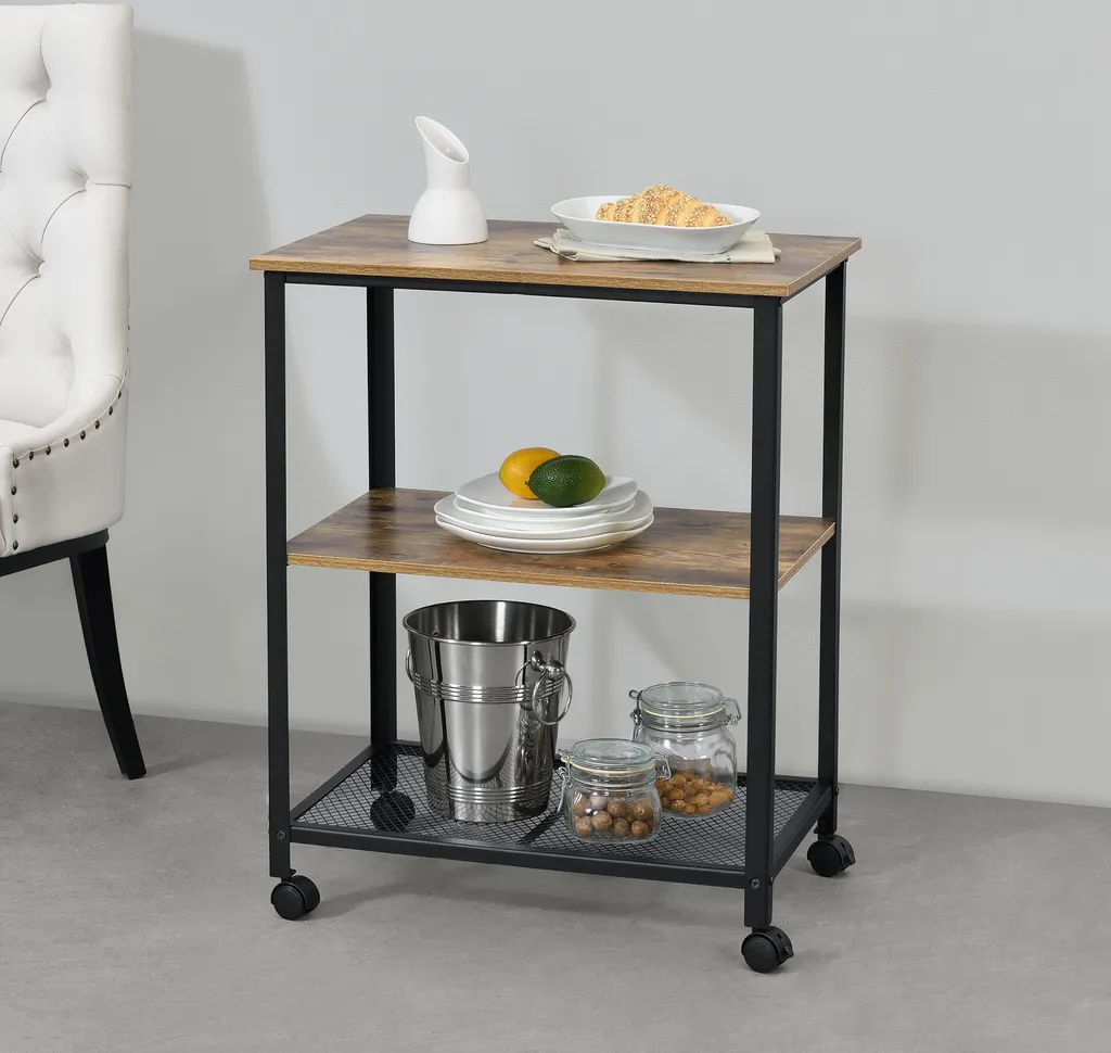Der rollbare und praktische Servierwagen ist eine vielseitige Ergänzung für jedes Zuhause. Er ermöglicht einen einfachen Transport von bspw. Tellern, Flaschen und Besteck. Darüberhinaus kann er als Regal genutzt werden und bietet dadurch einen zusätzlichen Stauraum für Ihren Wohnbereich.