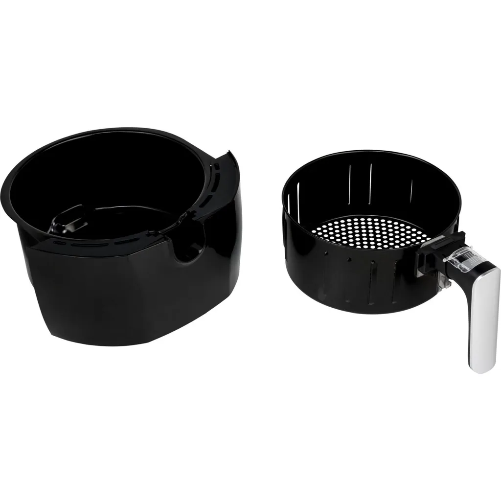 Heißluft-Fritteuse, rund, Display, Touch-Funktion, 3,2 l Fassungsvermögen, einstellbare Temperatur, minimal: 80 °C, maximal: 200 °C, Zusatzfunktionen Garen, Backen, Braten, 6 Programme, Kontroll-Leuchte, Timer, 1.500 Watt