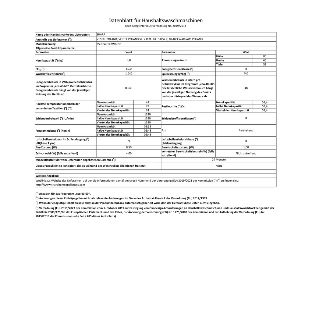 - Geräuscheniveau beim Schleudern in dB(A): 76