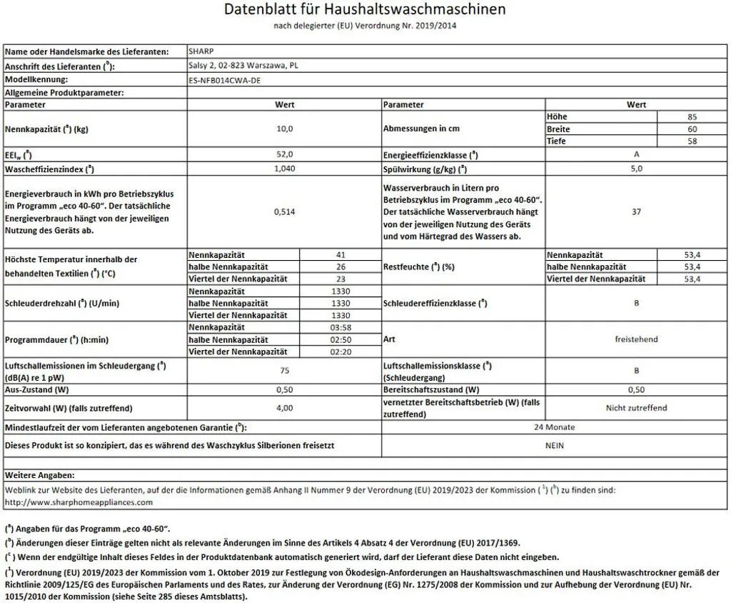 Programmdauer des Programms Eco 40-60 in min. (bei voller Beladung) 03:58