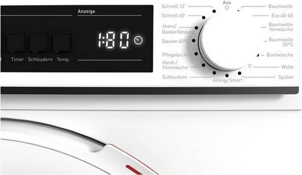 - Farbe, Baumwolles 20°C, Baumwolle 90°C, Feinwäsche/Seide, Pflegeleicht, Hygiene/Anti-Allergie, Jeans/Denim, Vorwäsche, Schnell, Abspülen, Wolle