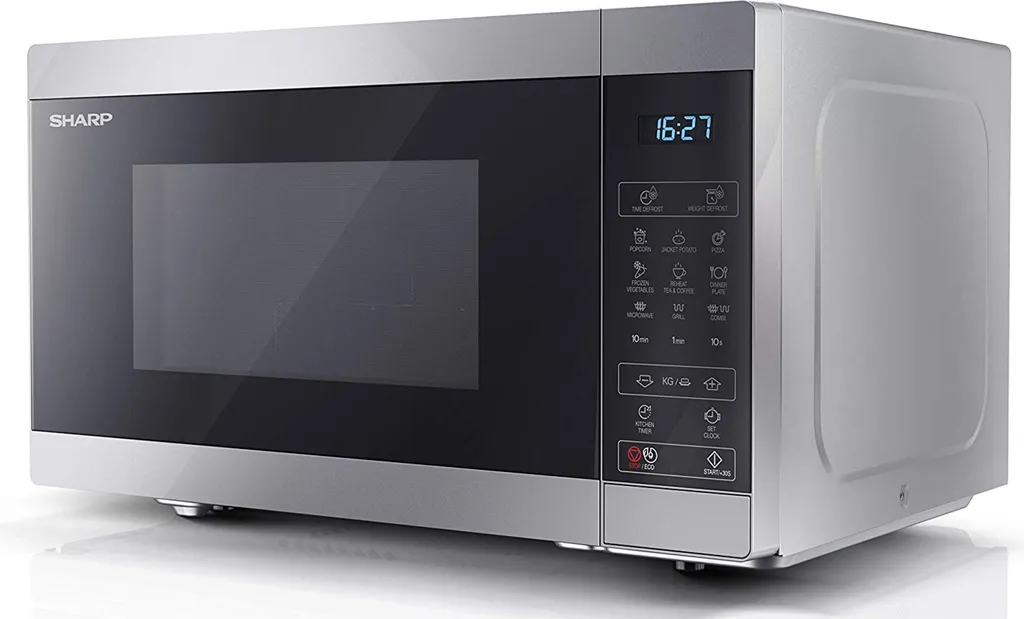 Der Sharp YC-MG02E-S ist mit allem ausgestattet, was ein moderner Mikrowellenherd haben sollte. Neben der Mikrofunktion verfügt es auch über eine Grillfunktion. Rotierende Scheibe, 11 Leistungsmodi, 8 voreingestellte Programme und Abtaumodus mit Gewichtseinstellung. Es ist auch mit einer Timer-Funktion und einer Kindersicherung ausgestattet. Sharp YC-MG02E-S hat auch einen Knopf für Popcorn.