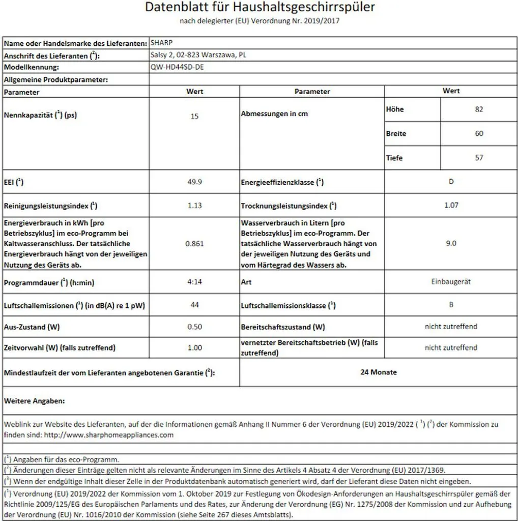 Energieverbrauch des Eco-Programms in kWh bei 100 Programmdurchläufen in Zyklen (2019/2017): 86