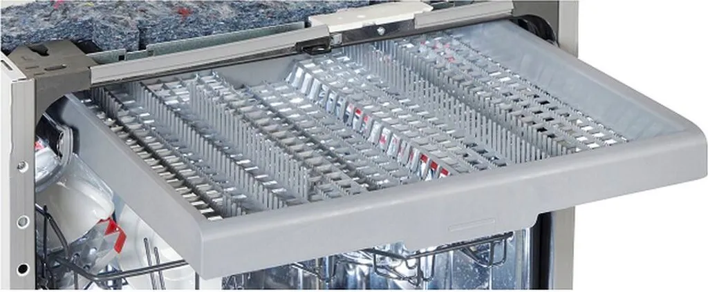 Mit dieser raffinierten FlexiTray-Besteckschublade können Sie das gesamte Besteck bequem ein- und ausräumen und sparen zudem Platz im Geschirrspüler