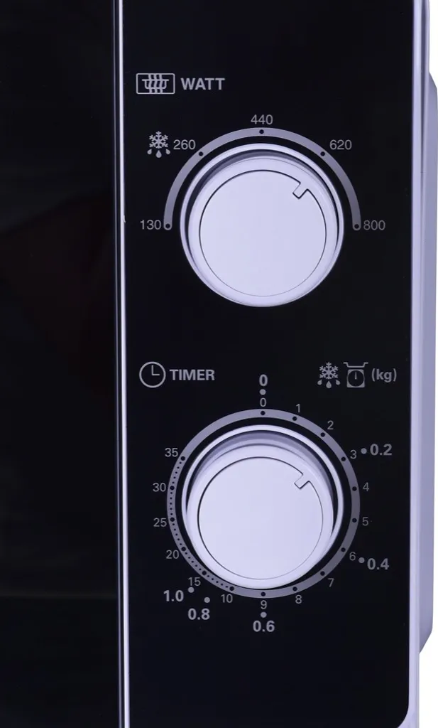 Solo-Kompakt-Mikrowellengerät mit mechanischer Bedienung. Das Gerät eignet sich ideal zum Auftauen, Garen und