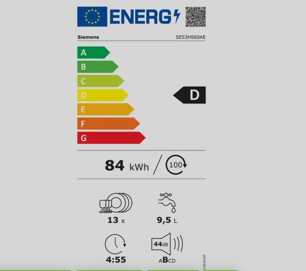 - Energieverbrauch des eco-Programms pro Betriebszyklus in kWh (EU 2017/1369): 0.836