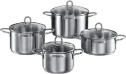 - Inhalt: 1x Bratentopf mit Deckel Ø 20 cm (V 2,5l), 2x Fleischtopf mit Deckel Ø 16 cm (V 1,9l), Ø 20 cm (V 3,3l), 1x Stielkasserolle ohne Deckel Ø 16 cm (V 1,5l) – Artikelnummer: 2109262589