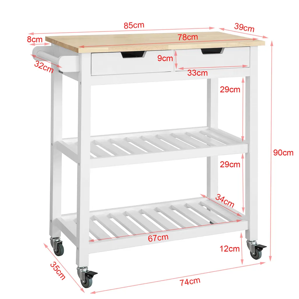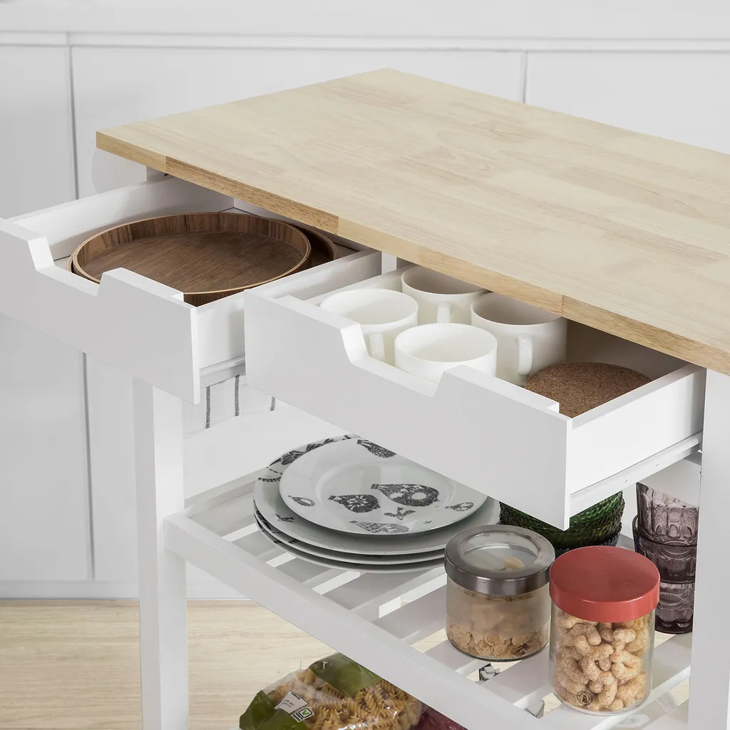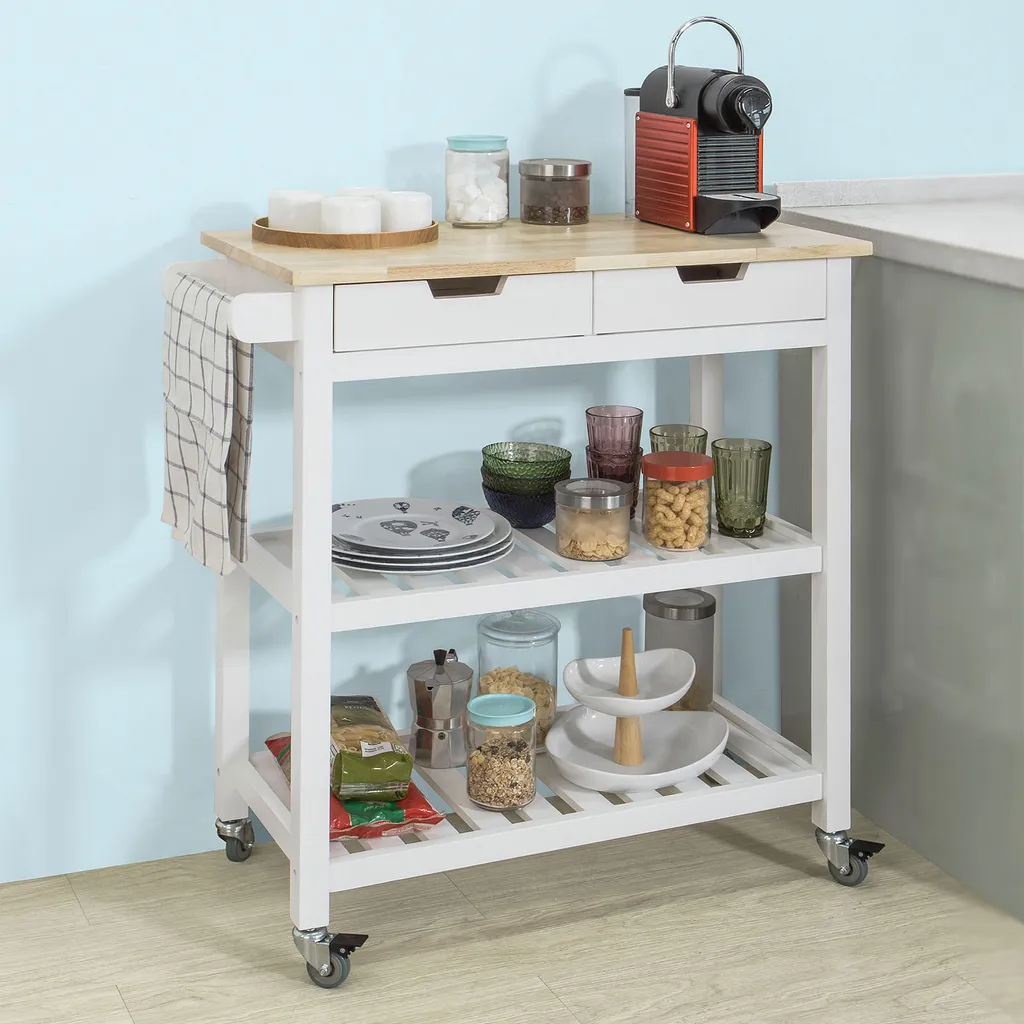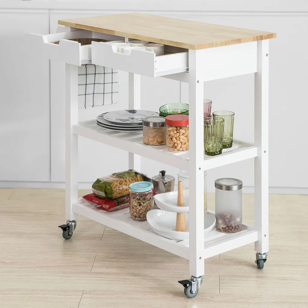 - Moderner Küchentrolley mit eimem Handtuchhalter und 2 praktischen Schubladen für Geschirr, Servietten uvm.