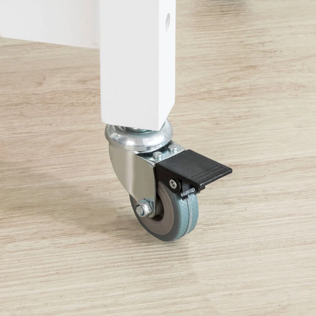 Der Küchenwagen hat vier stabile Gummirollen (2 davon feststellbar), auf denen sich der Küchenwagen leicht auf jeder Oberfläche verschieben lässt.