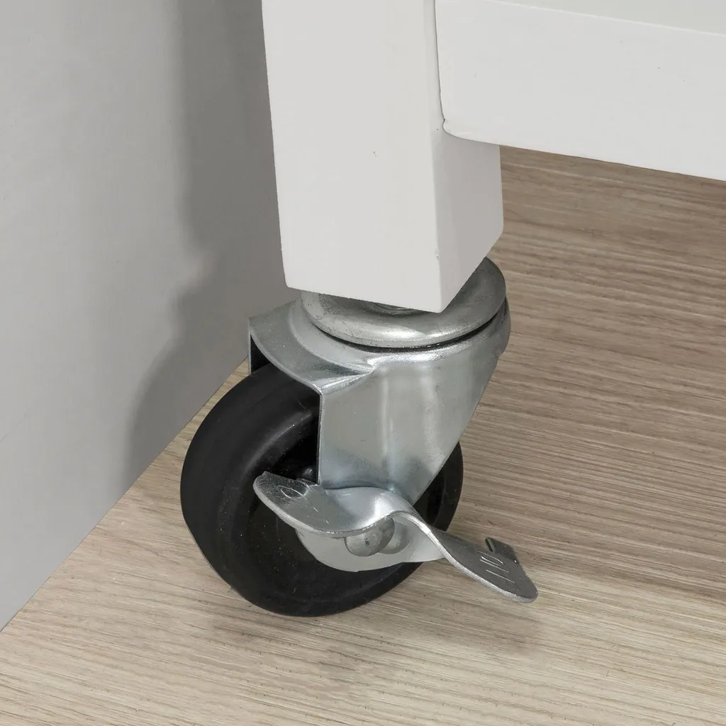 - Alle Rollen sind frei beweglich, zwei davon arretierbar