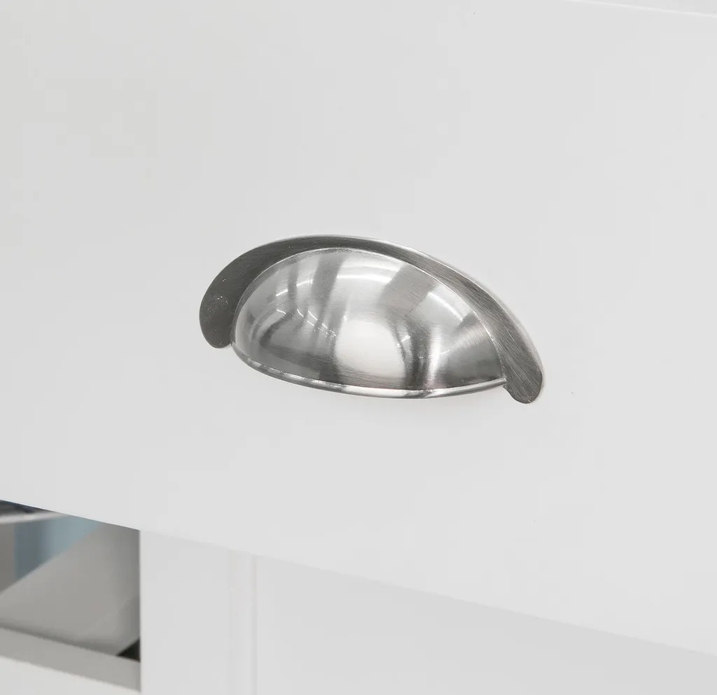 - 2 Schubladen mit robusten Metallgriffen und 1 Schrank mit Tür bieten genügenden Stauraum.