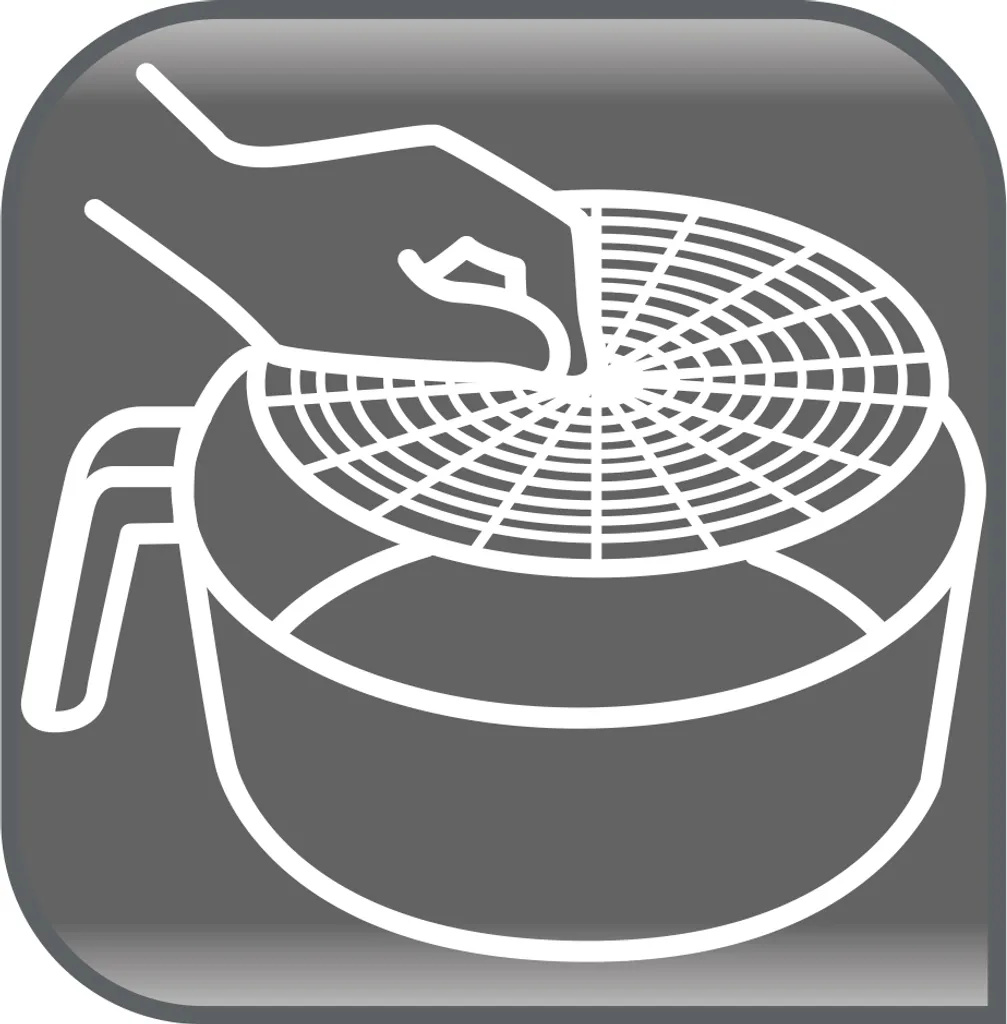 – 6 automatische Programme: Pommes frites, Grill, Snacks, Hühnchen, Fisch, Kuchen; digitales Display mit Touchscreen Interface