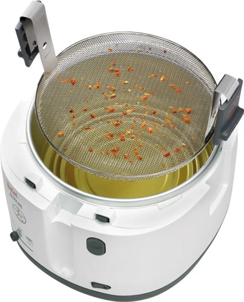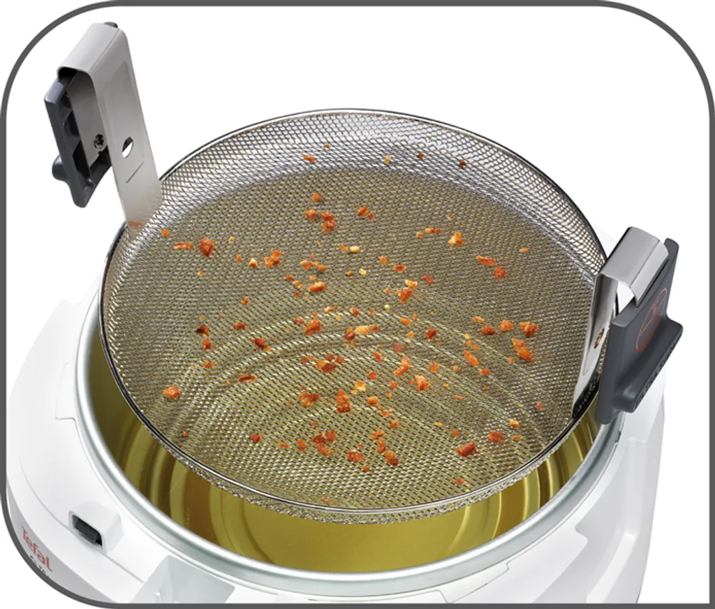Ärgern Sie sich auch manchmal über verbrannte Frittierreste am Ende des Frittiervorgangs? Damit Ihnen das zukünftig nicht mehr passiert und Sie Ihre frisch frittierten Speisen ohne Frust über ölige Malheurs genießen können, ist die Fritteuse One Filtra von Tefal mit dem patentierten Clean-Oil-System Filtra ausgestattet. Mittels eines extra feinen Auffangsiebes, das sich am Boden des Ölbades befindet, werden Frittierreste unmittelbar aus dem Öl gefiltert. Nach Beenden des Frittiervorgangs kann das Sieb dann am praktischen Griff einfach zum Säubern entnommen werden. Die in Weiß/Anthrazit gehaltene Fritteuse verfügt über einen mit einem Metall-Dauerfilter integrierten Deckel, der sich automatisch öffnet. Der im Deckel integrierte Filter mindert die Geruchsbildung beim Frittieren. Die Fritteuse aus dem Hause Tefal ist, dank eines Ein-/Ausschalters und einem regelbaren Thermostat mit integrierter Temperaturkontrollleuchte, kinderleicht zu bedienen. One Filtra frittiert für Sie bis zu 1,2 kg Pommes und Co. und bietet Platz für 2,1 Liter Frittierfett. Aber nicht nur das Frittieren, sondern auch die anschließende Reinigung der Fritteuse ist im Handumdrehen erledigt: Der Innenbehälter des Gerätes ist antihaftversiegelt und wie Deckel, Frittierkorb und Filtersieb abnehmbar und spülmaschinengeeignet – damit steht einer schnellen und gründlichen Reinigung nichts im Wege!