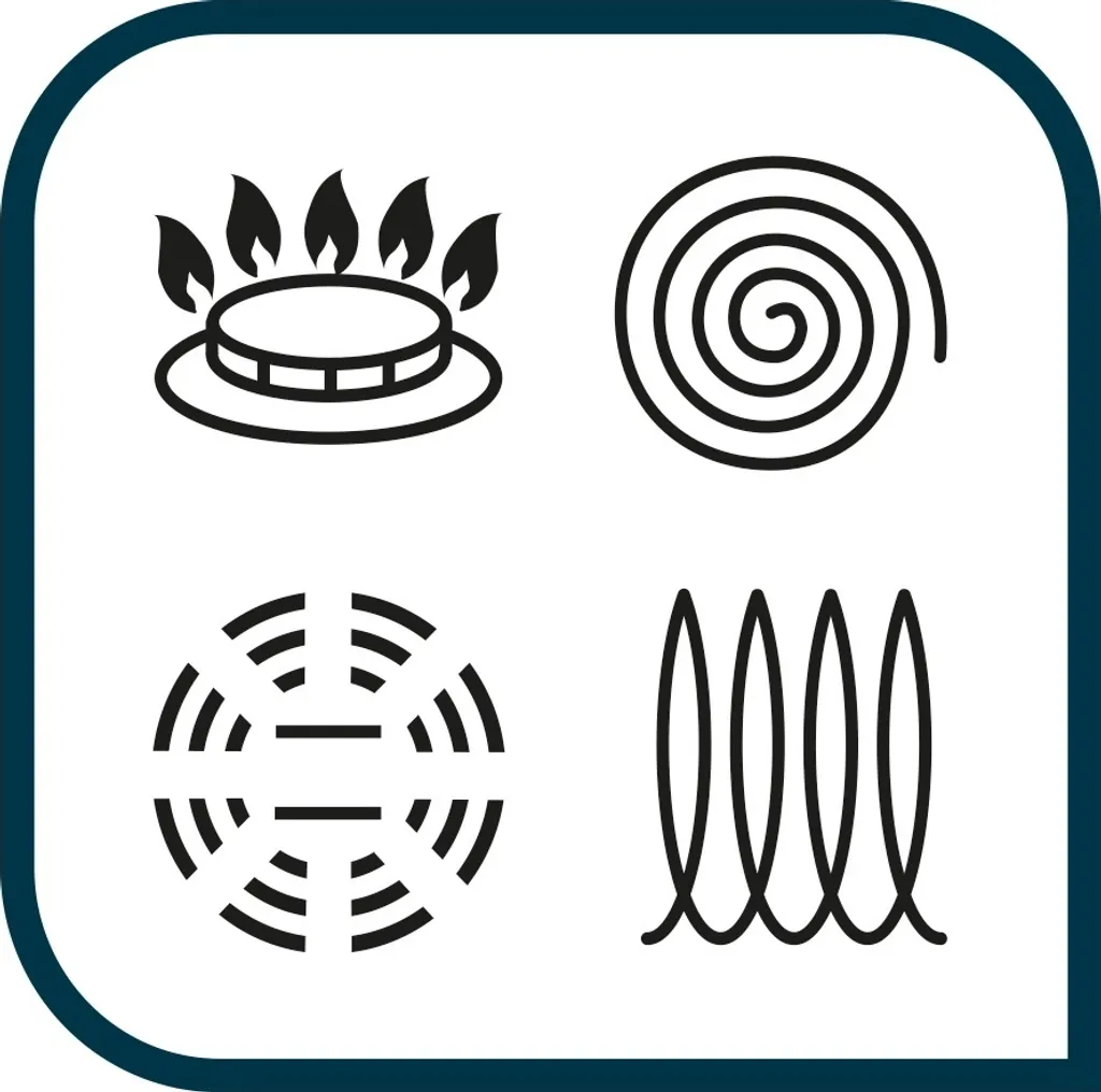 - Keramik, Gas, Halogen, Induktion, Versiegelte Platte