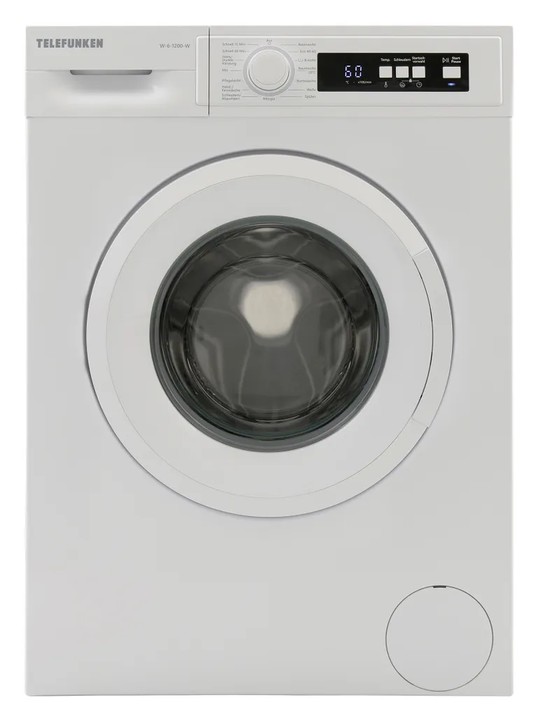Die freistehende Waschmaschine W-6-1200-W von Telefunken mit LED Display überzeugt mit Benutzer- und Umweltfreundlichkeit. Der Frontlader hat eine Nennkapazität von 6 kg und verfügt über zahlreiche Features wie z.Bsp. eine Kindersicherung, Startzeitvorwahl und einen Überlaufschutz. Insgesamt stehen Ihnen 15 verschiedene Programme zur Auswahl, darunter bspw. ein Schnellprogramm (15 Minuten) oder ein Buntwäsche-Programm.