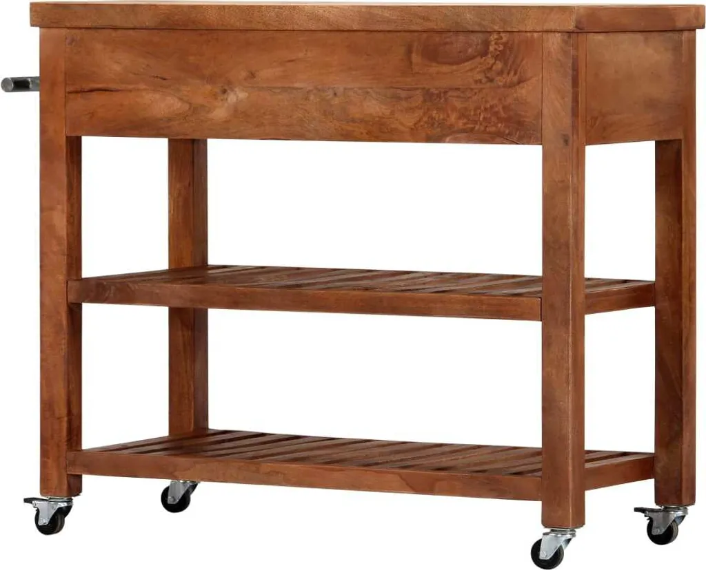 Verleihen Sie Ihrer Küche einen unverwechselbaren Vintage-Touch und mehr Stauraum mit unserem Küchenwagen aus massivem Akazienholz! Ob als zusätzlicher Stauraum für Ihre Lebensmittel, als Beistelltisch oder als Trolley – kein Problem.