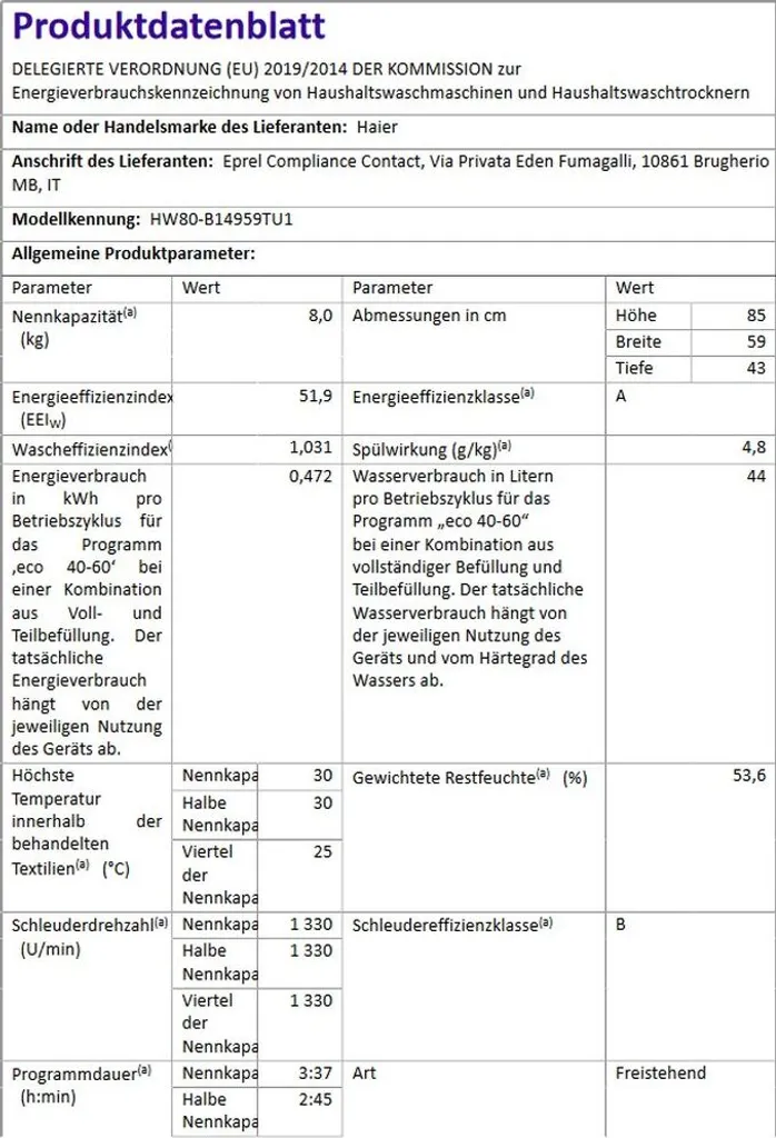 Haier HW80-B14959TU1 Waschmaschinen – Weiß